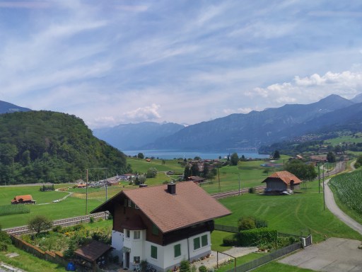 I looked out the window at the cerulean waters of Lake Thun carved from glacier ice, whose shores were dotted with old orange houses dispersing up word into the piney woods and up to the snow of the alps. I couldn’t help saying (if not about her), “I can’t believe how beautiful all this is.”